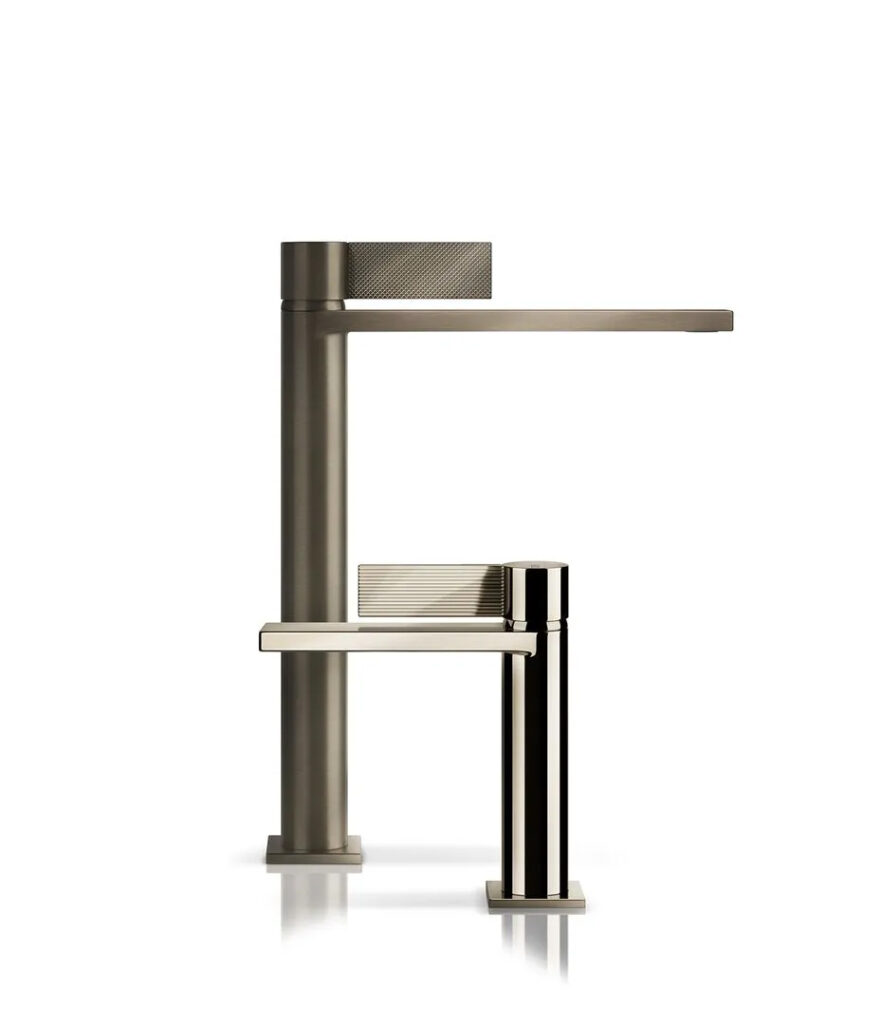 Inverso umfasst die charakteristischen Elemente der Marke, von Rechtecken bis Kreisen, in einer Reise, die diese beiden geometrischen Formen in einer unlöslichen Verbindung zusammenführt, betont durch Elemente, die sich harmonisch gegeneinanderstellen, ähnlich einem Oxymoron. Der zylindrische Körper kombiniert mit der quadratischen Basis, auf der er ruht, verfügt über einen ultradünnen Auslauf und einen dekorierten Hebel und vermittelt Leichtigkeit und Sauberkeit der Form. Ein weiteres Zeichen der Innovation in Inverso ist die beispiellose Ergonomie der Öffnung des Mischers, angereichert mit der sensorischen Erfahrung von Texturen und sorgt für äußerste Benutzerfreundlichkeit.