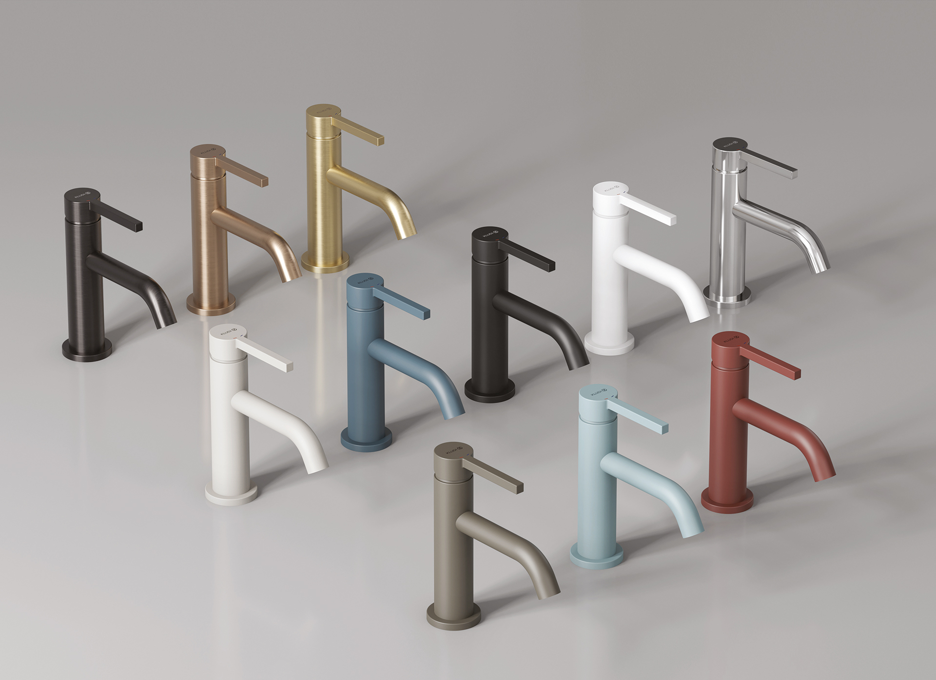 Mit acht neuen Oberflächenvarianten für seine Einhand-Waschtischmischer aus dem Erfolgsprogramm Kludi-Nova Fonte Pura verschafft Sanitäranbieter Kludi (www.kludi.com) der Individualisierung der Badgestaltung neue Optionen. Erhältlich ist die Armaturenserie neben den bereits bisher verfügbaren Oberflächen Chrom, Mattschwarz und Mattweiß ab sofort auch in den kratzfesten PVD-Farben Brushed Gold, Brushed Bronze und Brushed Gunmetal, sowie in den matten Pulverbeschichtungen helles Taubengrau, Taubengrau, Türkis, Hellblau und Zinnoberrot. „Damit geben wir nicht nur der Kreativität und Gestaltungsfreude zusätzliche Impulse, sondern wir machen es darüber hinaus möglich, dass jeder durch den Einsatz von Farben seine persönliche visuelle Welt zelebriert und ein starkes Statement abgibt“, betont Leonardo de Muro, Group Marketing Vice President. Dies gilt umso mehr, als Kludi in seinem neuen Sortiment künftig neben Armaturen auch Waschbecken, Accessoires und Möbel in einer breiten Palette von Farben, Oberflächen und Materialien anbieten wird, die eine Vielzahl an spannenden Kombinationsmöglichkeiten erlaubt. „Der Fantasie sind hier keine Grenzen gesetzt“, so Leonardo de Muro.